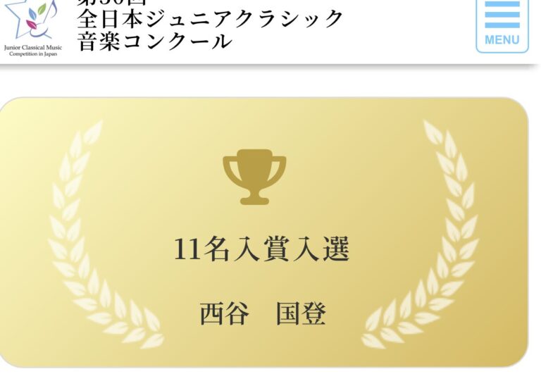 ニュース 2025-11-06 【遂に第1位受賞🥇😭】第49回全日本ジュニアクラシック音楽コンクール優秀指導者賞受賞&全部門入賞入選者数最高位第1位獲得!祝 遂に、第49回全日本ジュニアクラシック音 […] 続きを読む