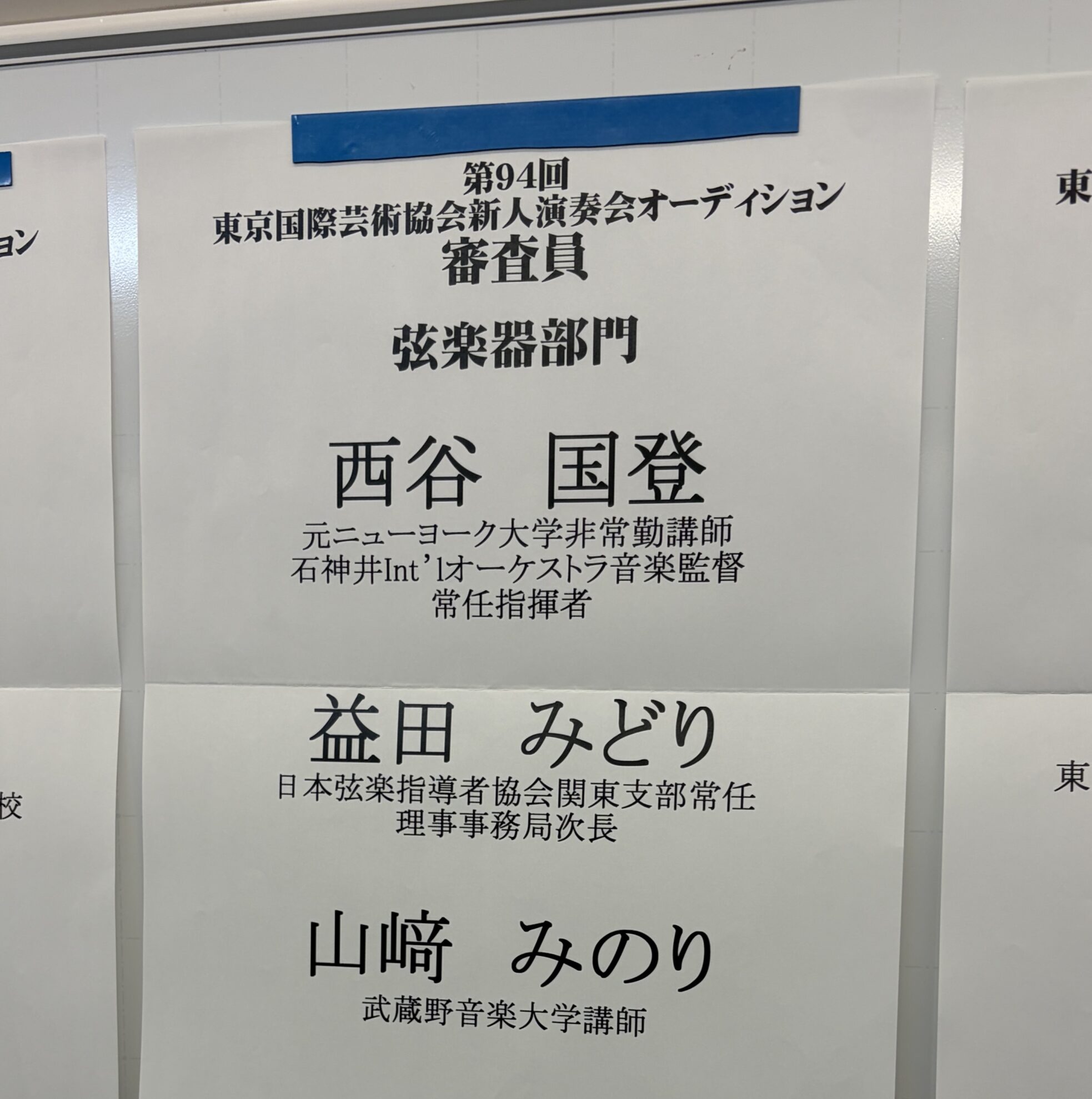 今回ご一緒した審査員は、バイオリンの益田みどり先生とチェロの山崎みのり先生。偶然にも「み○り」コンビ!?のお二方のベテラン先生達と並んでの審査で、審査員室は終始和やかでした☺。音楽の話から美容の話!?まで、笑いの絶えない、とても楽しい時間でした☺
