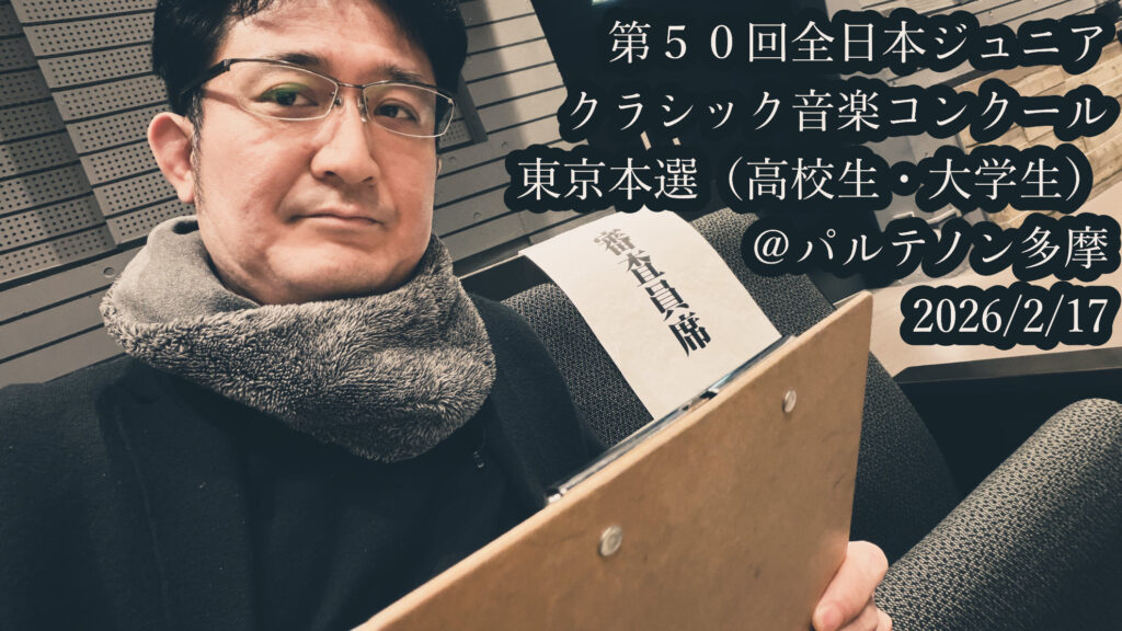 2026年2月17日、パルテノン多摩にて、第50回全日本ジュニアクラシック音楽コンクール東京本選の審査を務めました。今回は、高校生・大学生の皆さんの演奏を聴かせていただきました!